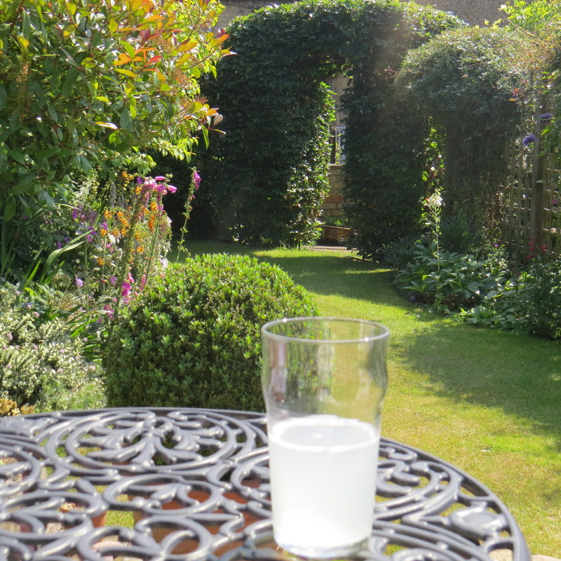 After a pleasant walk along country lanes and exploring the allotments we went home and enjoyed a cold ginger beer in this pretty little garden that Linda is looking after while her neighbour is away.