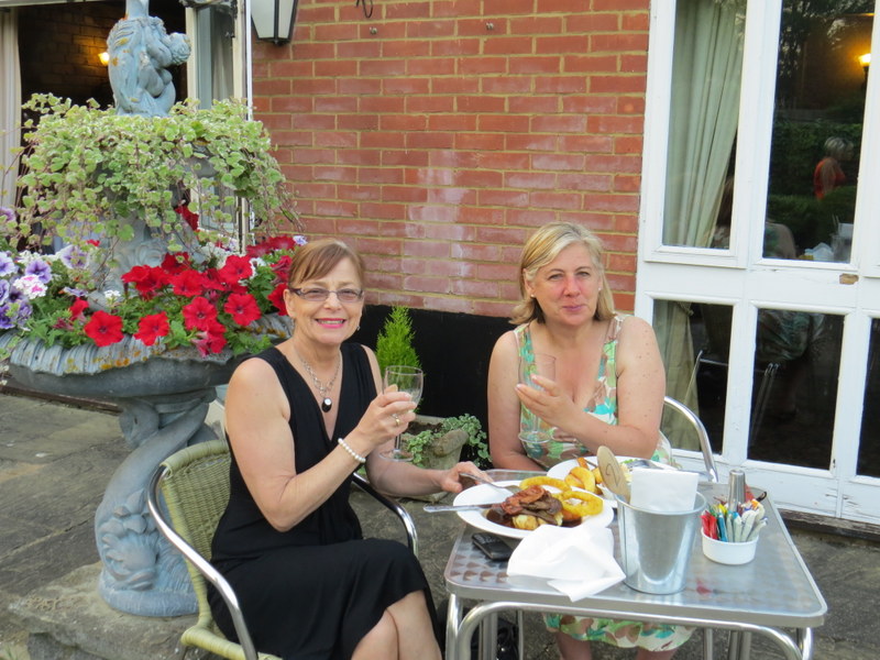 It had been a pretty hectic day and so we decided to go to the local pub for dinner. At 8 o’clock it was till warm and light and we sat outdoors in sleeveless dresses and no jersey.