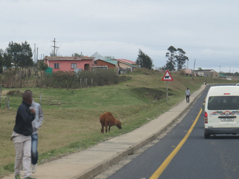 When we turn inland and travel through a part of the Eastern Cape to get to Kokstad at the foot of the Drakensburg Mountains. The roads can be treacherous to travel along because of potholes and livestock who think the road is there for them. Today the condition of the road is mainly good – maintenance has taken place but the livestock are there.