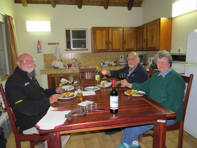 I went in for a little longer and then we all got out and would you believe – Pat slipped and landed flat on her back hitting her hand hard as she fell. Oh horror! We used the towel trick to get her up too. Unfortunately her hand was really hurt. Back at camp we iced it and I put an ice-pack in the freezer that she could use in the night. Earl strapped her up as best he could and she insisted that she would be fine. (I am writing this two days later so I can report that she went to Skukuza the next day to consult a doctor and is now in a brace and on medication for the pain. If the swelling does not go down she will have to have x-rays but right now she is comfortable.)