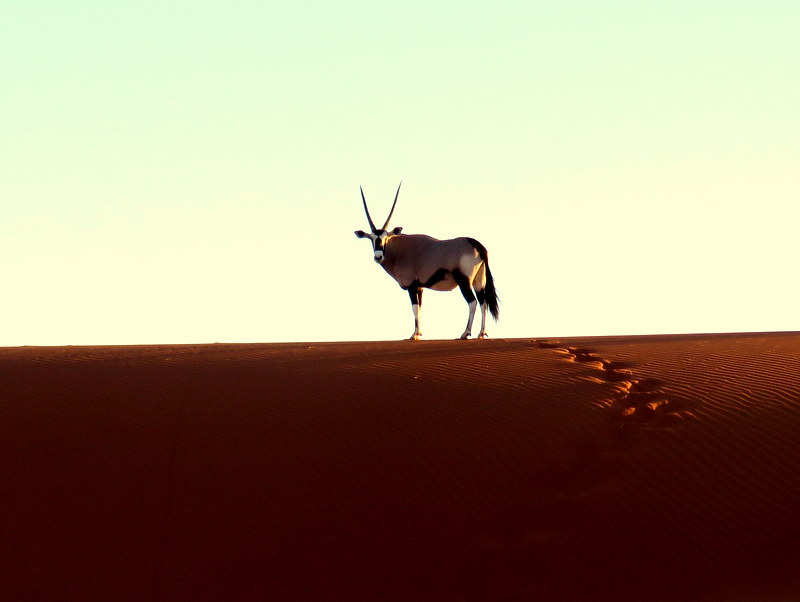 Our wake-up call is a knock on the door at 4:30 am. It is a tad chilly and we all meet wrapped up in fleeces and warm jackets. It is an hour’s drive to the sunrise spot. We take photos of the rising sun before climbing a high dune.