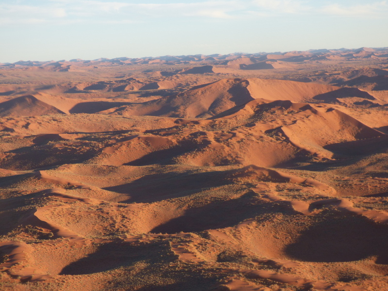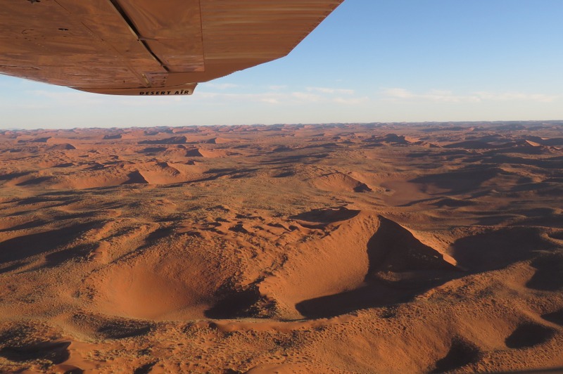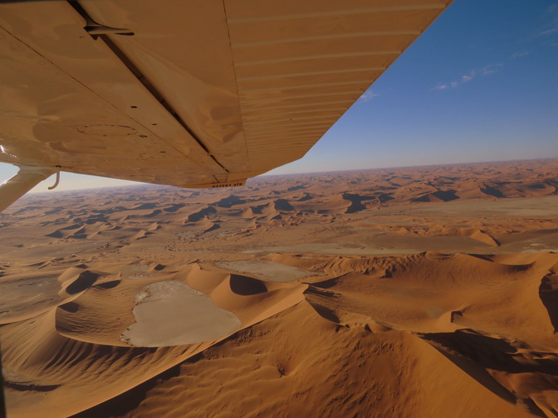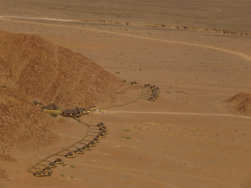 We took an hour and a half flight over the dunes and looked down on our lodgings – our hut is the first one in the row this side of the main buildings.
