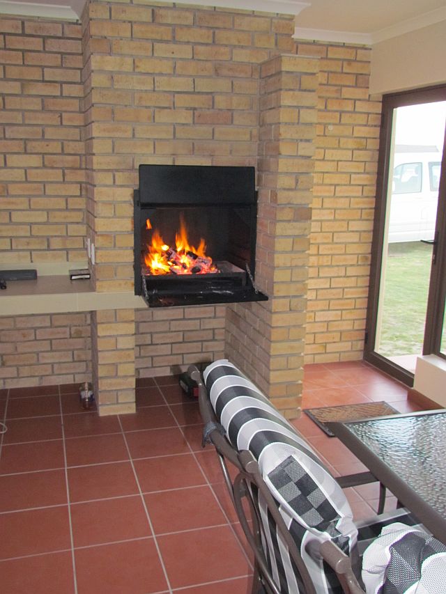 Thank Goodness for our indoor braai! Earl lit the fire and we warmed up beside it until it was ready to cook our supper – starter of spiced bacon on a skewer followed by lamb chops, rolls and salad. Then an early night in our snug little beds.