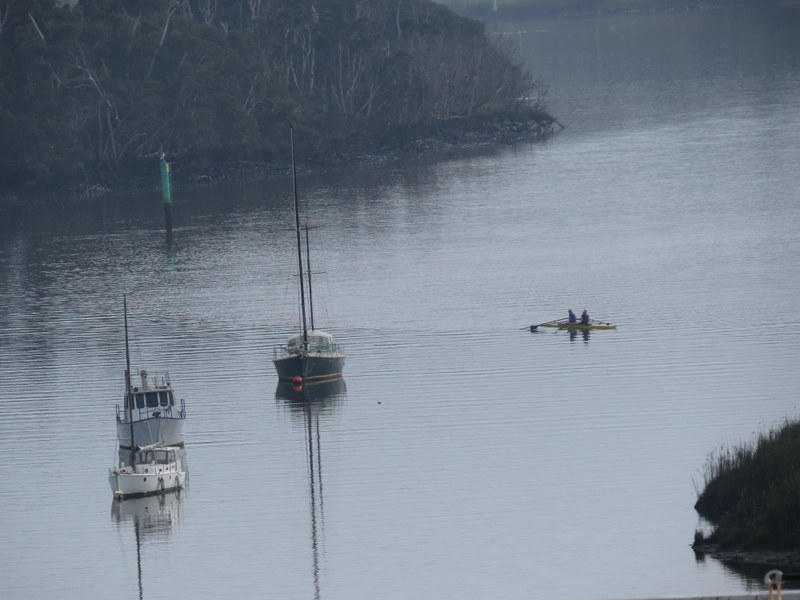 Well we finally arrived in beautiful Hobart, waited ages for the luggage to be offloaded, got our hire car – a red Golf – and with a difficulty found our accommodation – very posh with a fabulous view but all in one room! It was late so we ordered room service. Fettuccini with creamy mushroom and bacon sauce. And they only brought after I’d repeated the order four times! Anyway – it was an adventure – and things could have been worse.