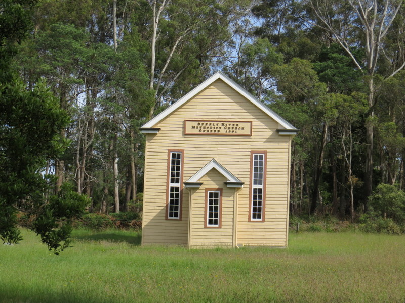 We took a wrong turn and found a beautiful little Methodist Church and cemetery on the Supply River. It had an interesting history having been started after a man dying in the bush requested the services of a minister. A certain Thomas Travers took a hazardous journey to bring Reverend TB Harris back to minister to him. After this it was decided to build a small church and have services there. It dates back to 1857.