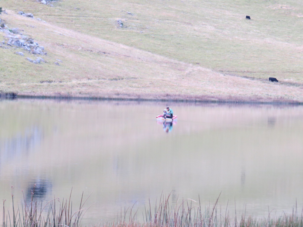 It was misty and moisty again this morning but Earl got up and went out on the dam. The weather kept changing from mist to clear but it was the wind that made it a little unpleasant on the water. Not that it seemed to put my intrepid fisher-husband off – he kept at it and caught several more trout!