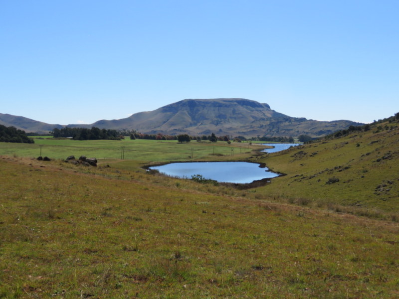 Bird life was interesting on the way and we saw stonechats, red-shouldered widow birds, long-tailed widow birds, red bishops, yellow bishops, yellow-throated long-claw, jackal buzzard and yellow-billed kite. As we climbed higher we saw one Cape Vulture after another fly overhead toward a clump of trees. We realised that there must be a kill or dead livestock somewhere. Indeed that is exactly what it was and a little way ahead on the road we saw dozens on the ground. Of course as we approached they all flew off and circled overhead. The cause of the fuss were two young cows dead on the road. We found out later that they had been struck by lightening.